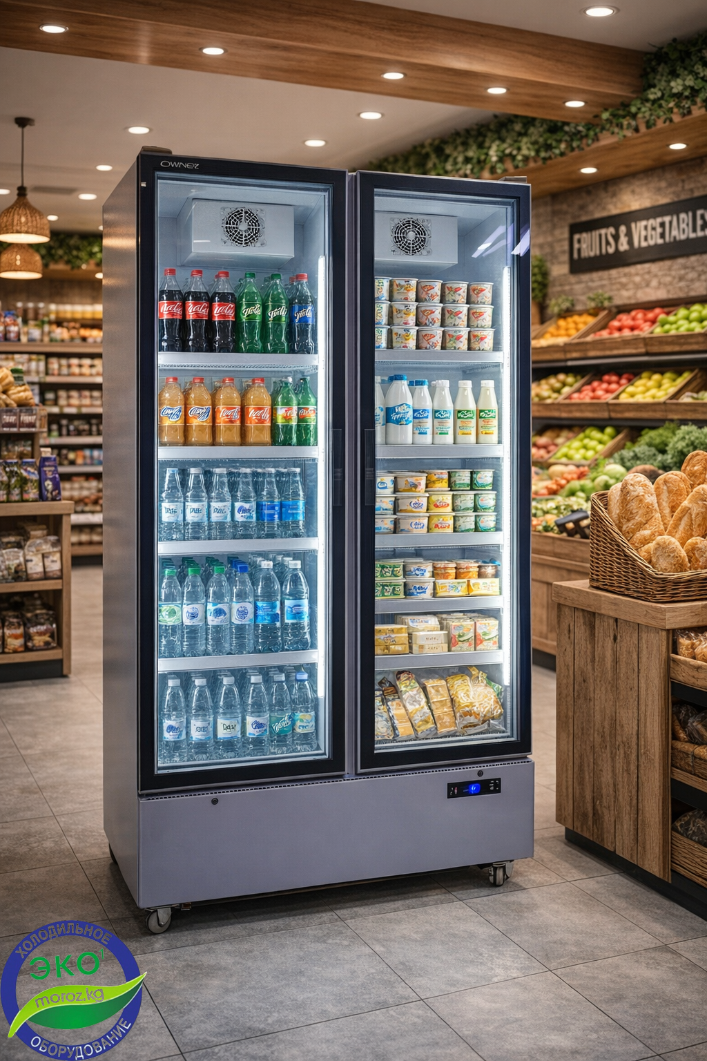 Боковое освещение позволяет легко находить нужные продукты даже в темное время суток.