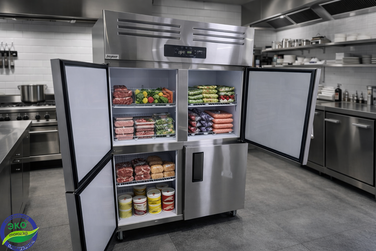 Холодильник Морозильник JOYE SCL-820 обладает рядом дополнительных преимуществ. Он оснащен 4 дверями с доводчиком и магнитной вставкой, что обеспечивает надежное закрытие и сохранность продуктов. Двери выполнены из нержавеющего метала, что придает холодильнику стильный и современный вид.