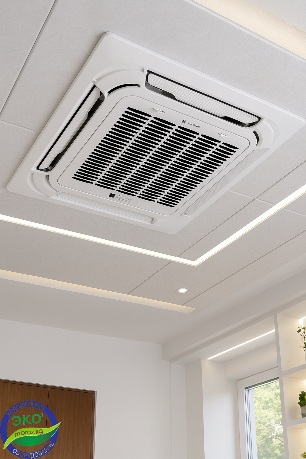 Тип блока — 4-поточный кассетный кондиционер, обеспечивающий точное и мягкое охлаждение по всему помещению без сквозняков.