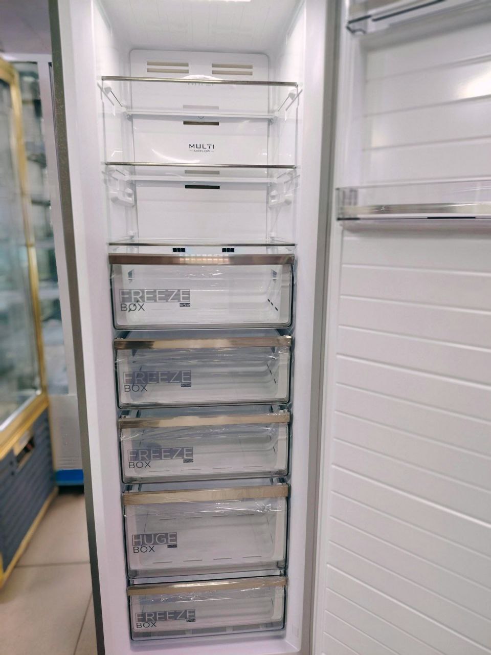 Вертикальный морозильник MIDEA MDRU385FZE46 — современная высокоэффективная морозильная камера с системой Total No Frost, созданная для длительного и удобного хранения продуктов. Благодаря вместимости 280 литров, продуманной организации пространства и низкому уровню шума, модель идеально подходит для дома, магазинов, кафе, пекарен и бытового использования.