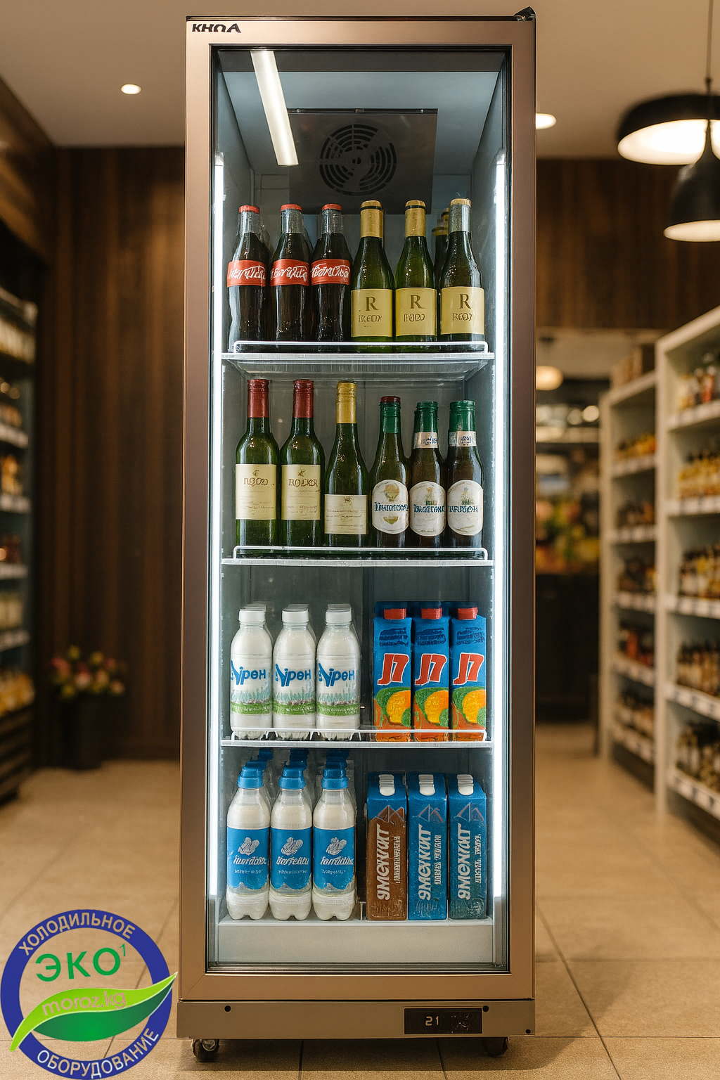 Холодильник имеет ёмкость 700 литров и работает на озон безопасном фреоне R290a, обеспечивая температурный режим от +2 до +8 градусов. Произведен в Китае.