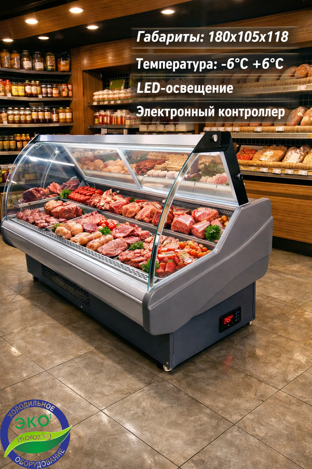Витринный холодильник MOROZ XC-ASY-1800 (1800 мм) — идеальная холодильная витрина для мяса, колбас и гастрономии в Кыргызстане