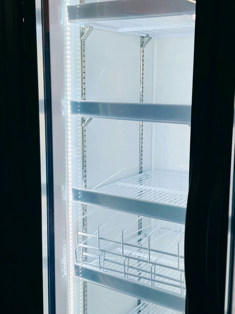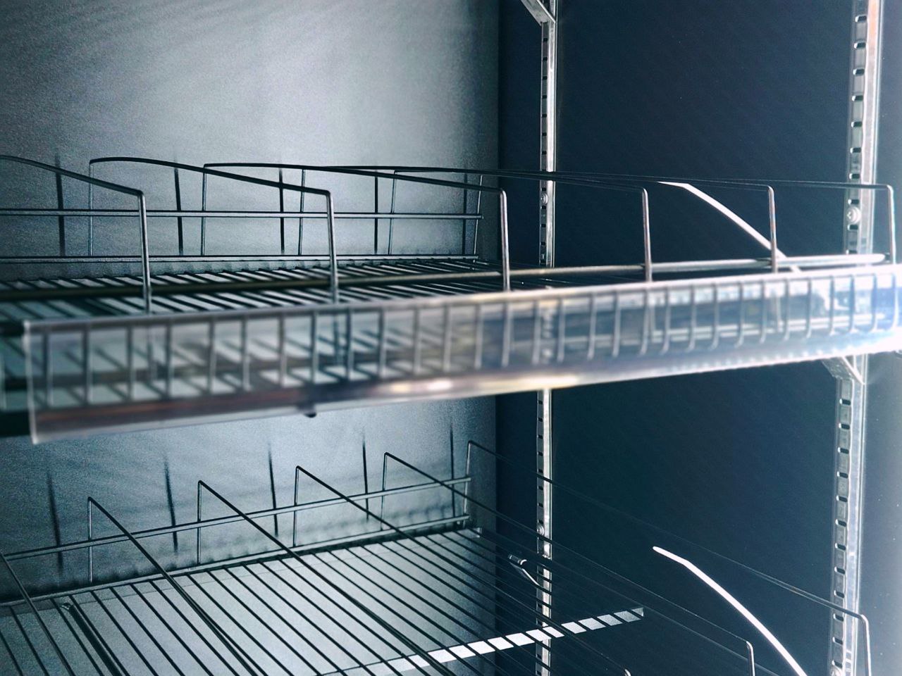 -Удобные и надёжные элементы организации пространства: встроенные ценникодержатели обеспечивают аккуратное и читаемое размещение цен и информации о товарах, а регулируемые крепления‑колки для бутылок позволяют компактно и эстетично разместить напитки разных форматов, повышая визуальную привлекательность продукции и упрощая выбор покупателю.